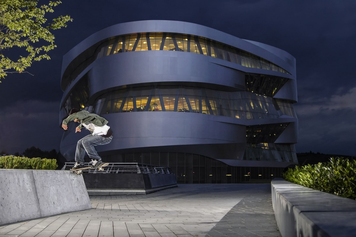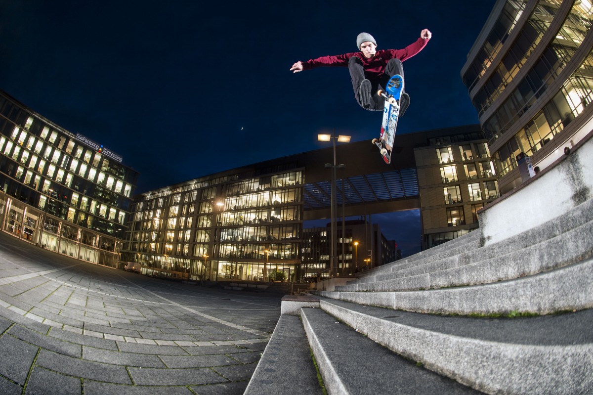 Skateboarding hat etwas mit der Kontrolle von Schwerkraft zu tun – und Daniels Fotografie tut dies auch: Seit einigen Jahren entwickelt und fliegt Daniel sogenannte