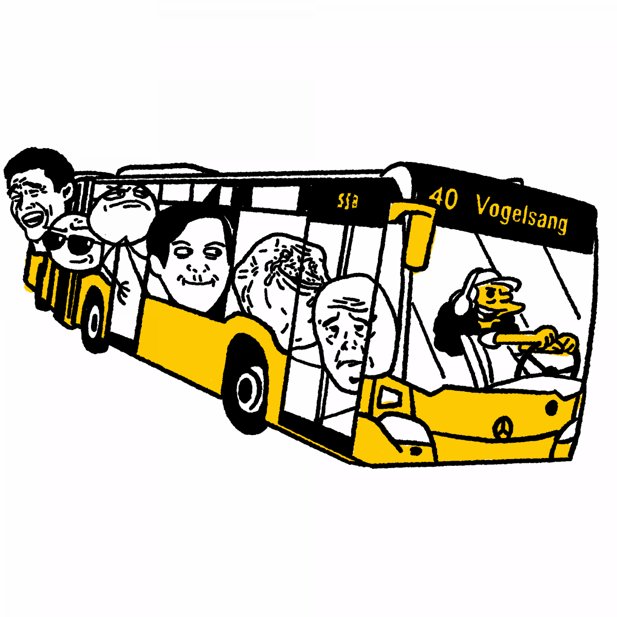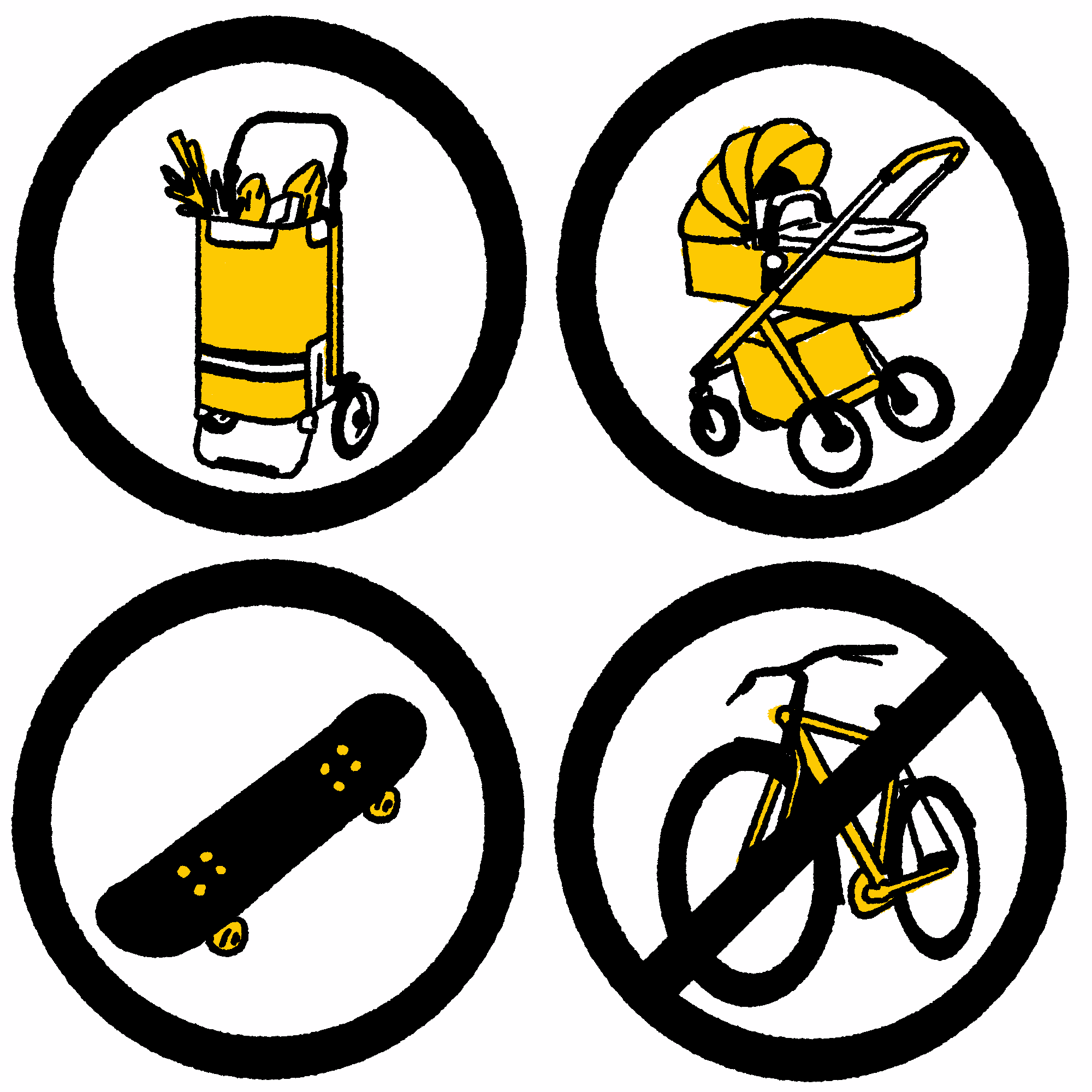 5. Fahrräder sind im Bus verboten. Skateboard, Kinderwagen oder Hacken-Porsche sind aber erlaubt.