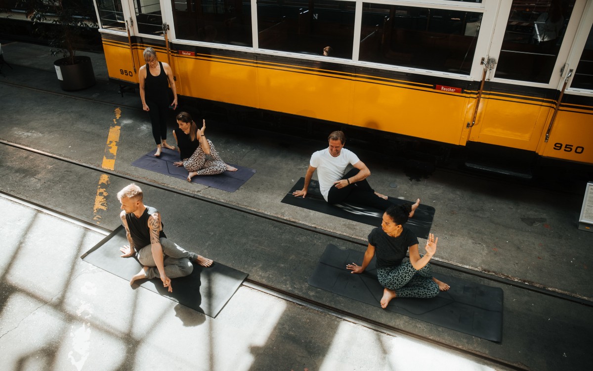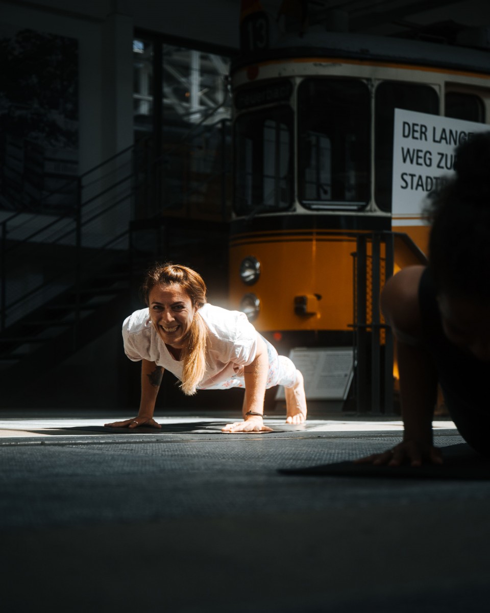 Yoga im Straßenbahnmuseum