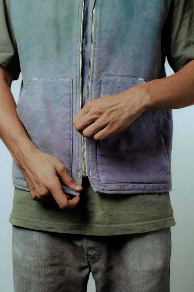 Schon als 14- oder 15-Jähriger habe ich Shirts selbst bedruckt und gemeinsam mit einem Freund an meiner Schule verkauft. Darauf folgten eher experimentelle Sachen, für Freunde und Bekannte in kleineren Auflagen. Hoodies, Shirts und Taschen zum Beispiel. Textilien waren schon immer sehr präsent in meinem Leben und der Designaspekt wurde mit zunehmendem Alter immer wichtiger. Angefangen hat Colors in Progress mit einer weißen Vintage Levis Jeans. Secondhand, viel zu groß, viel zu sauber. Mit ihr wollte ich etwas Neues ausprobieren, ihr sozusagen meinen eigenen Touch verleihen. Was ist die Idee hinter Color in Progress?