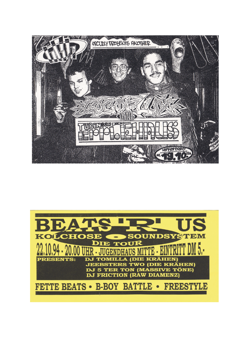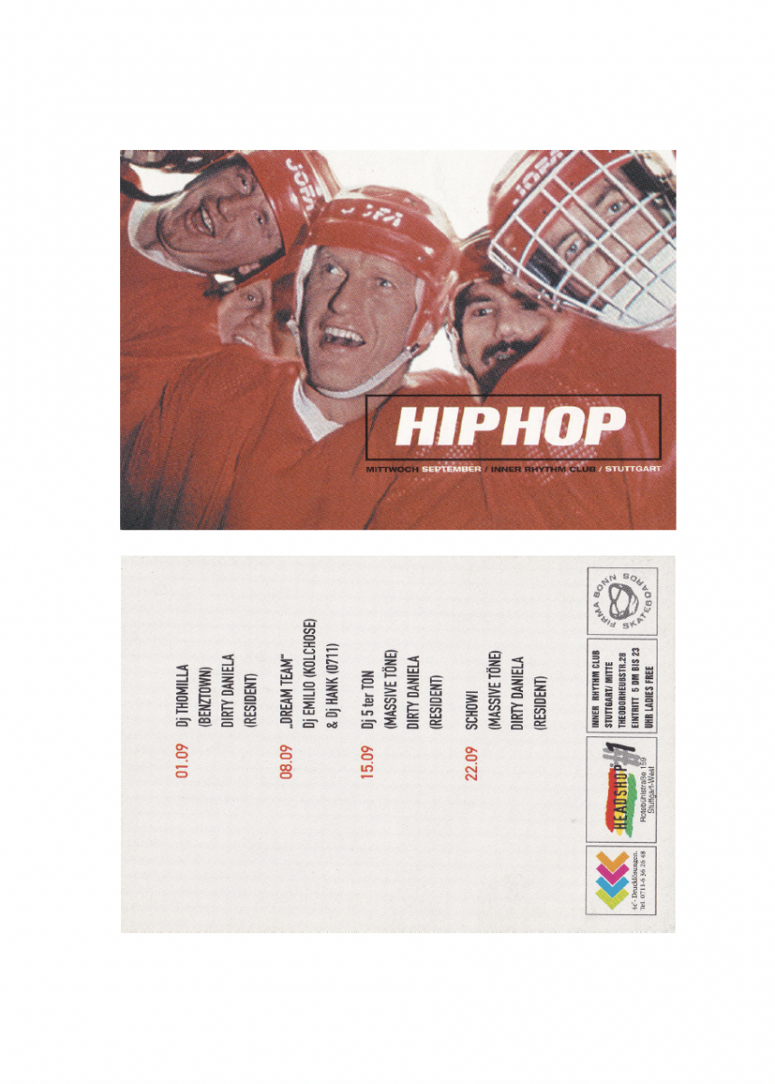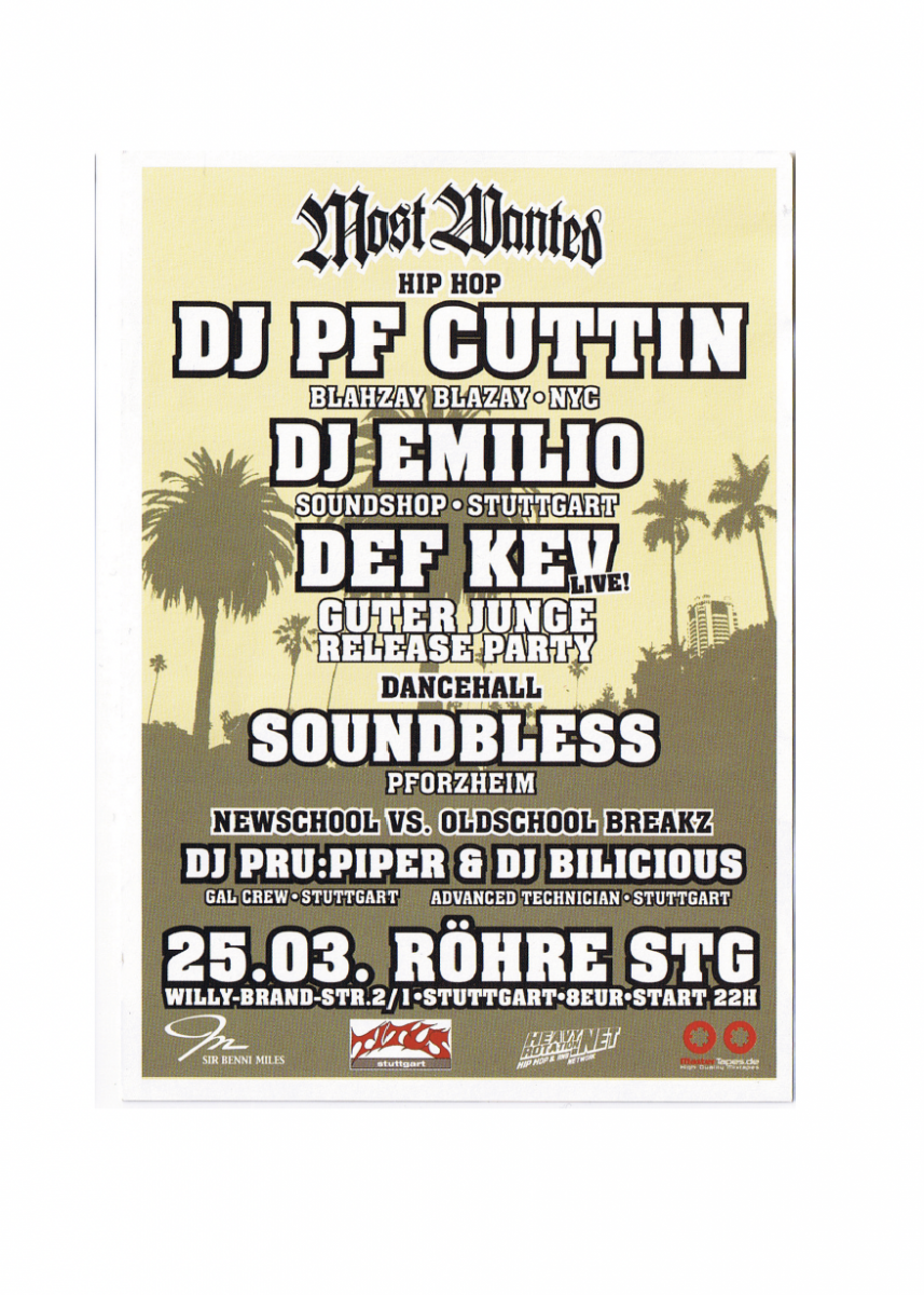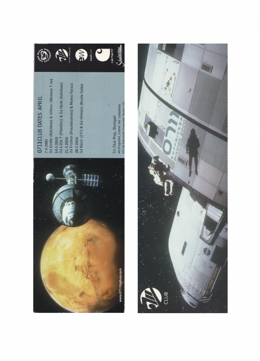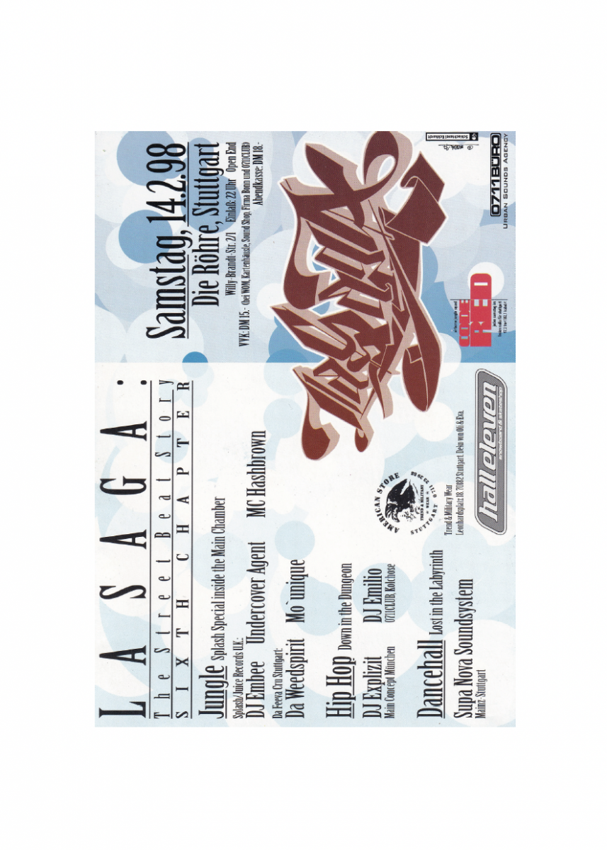 Benjamin Bischof und Elmar Jäger sind tief in die grafische Hip-Hop Welt Stuttgarts von 1993 bis 2003 eingetaucht und haben ein Buch über das entscheidende Kommunikationsmittel dieser Zeit gemacht. Für die Recherche saßen die beiden nicht nur an der Quelle, sie waren quasi die Quelle: Elmar galt schon Ende der 90er Jahre als "Grafikabteilung" für die Stuttgarter Clubszene und einige der Flyer im Buch stammen aus seiner Feder.