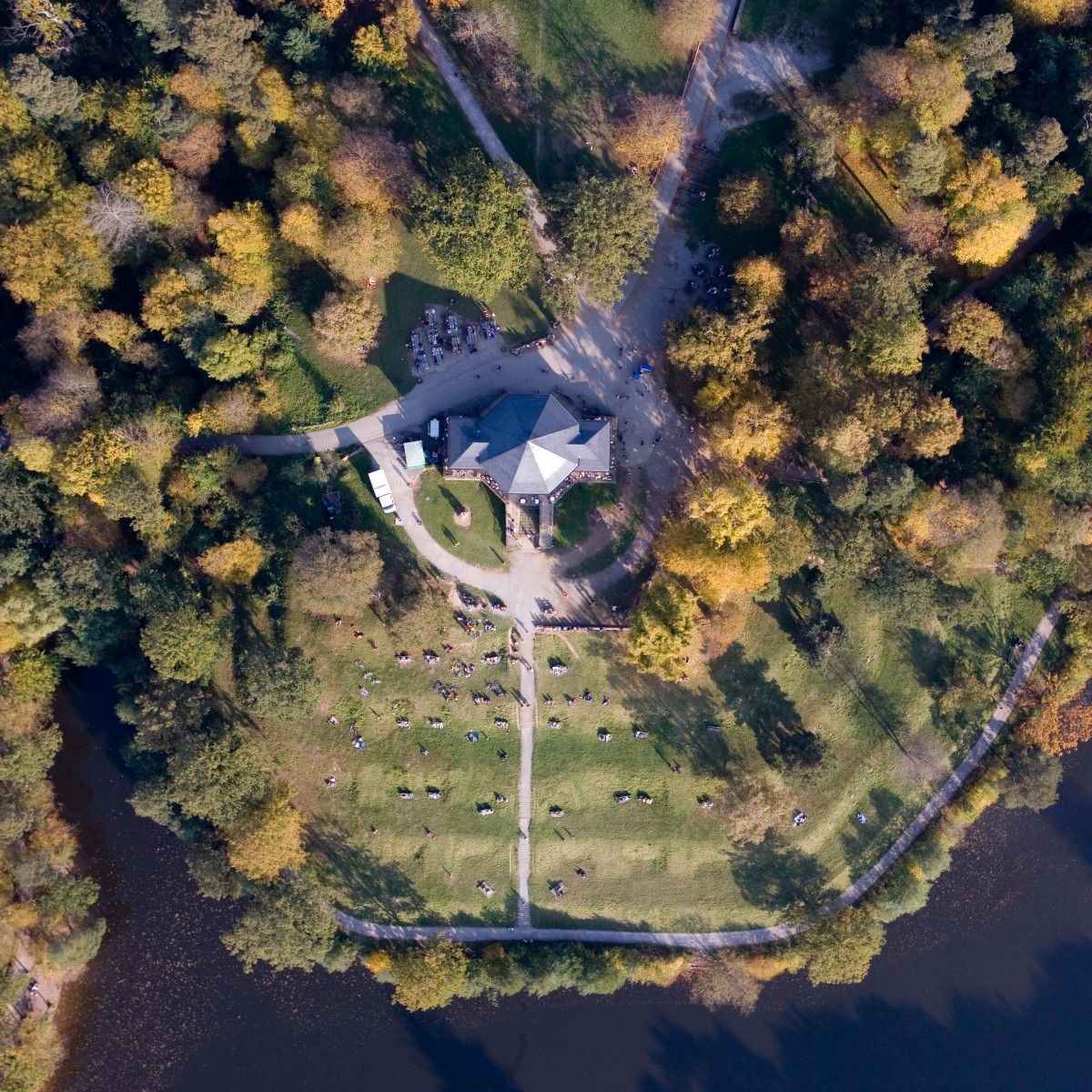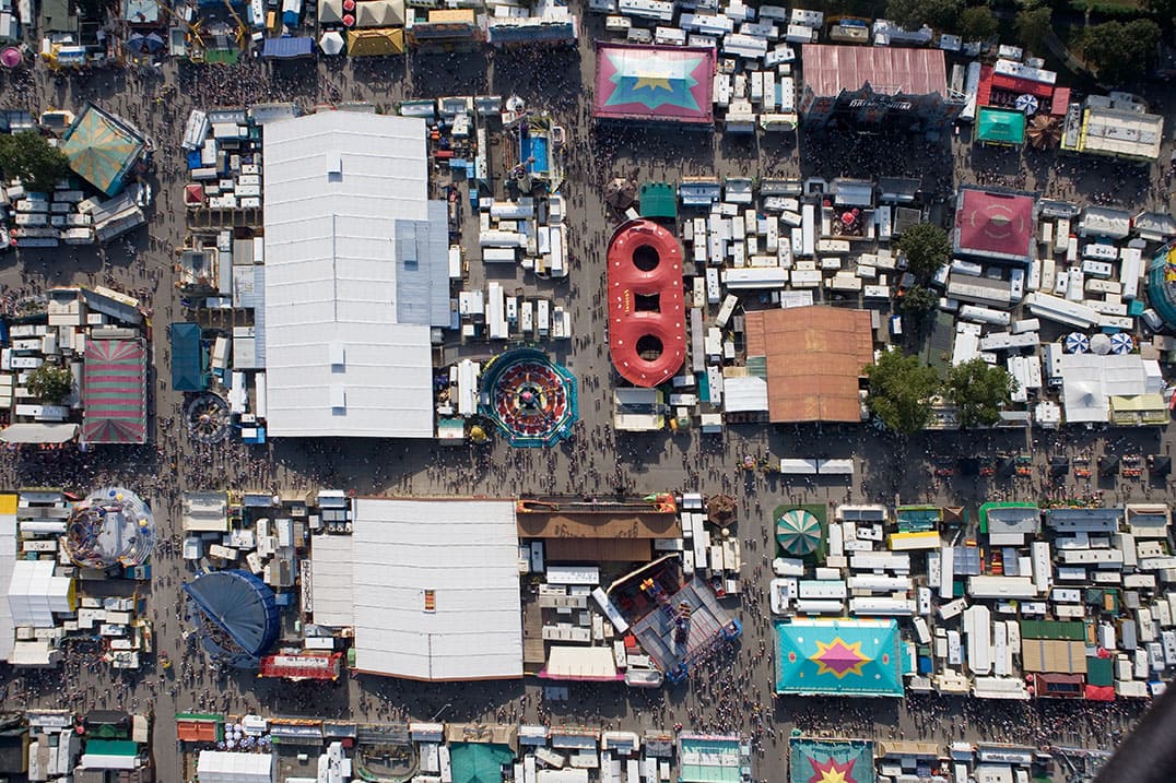 Die Bilder sind vielschichtig: Es geht um Ästhetik, aber auch um Ethik – mit einem dokumentarischen Ansatz. Kompositionen, die farblich und grafisch harmonisch sind, entpuppen sich als Bilder mit Narben in der Natur, die von Menschen gemacht wurden. Bilder voller kleiner Geschichten und politischer Elemente, die erst durch die Distanz von oben sichtbar werden.