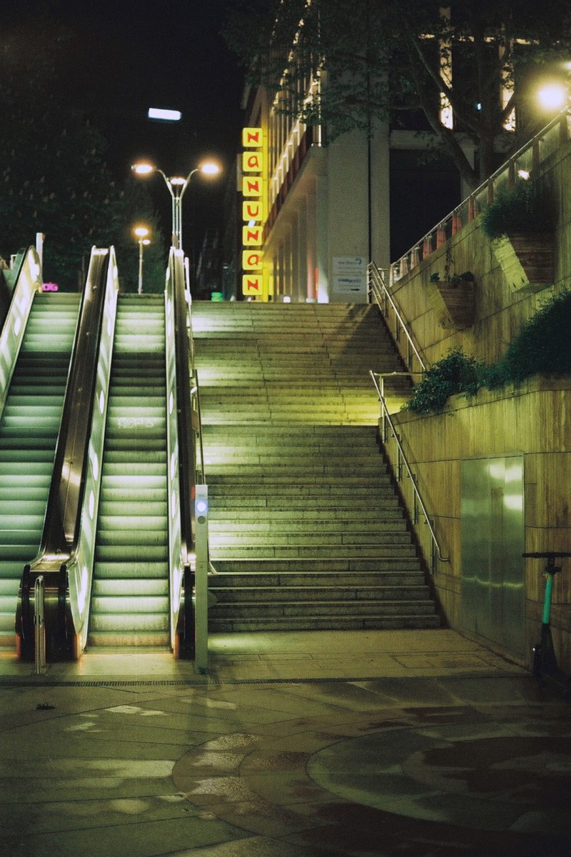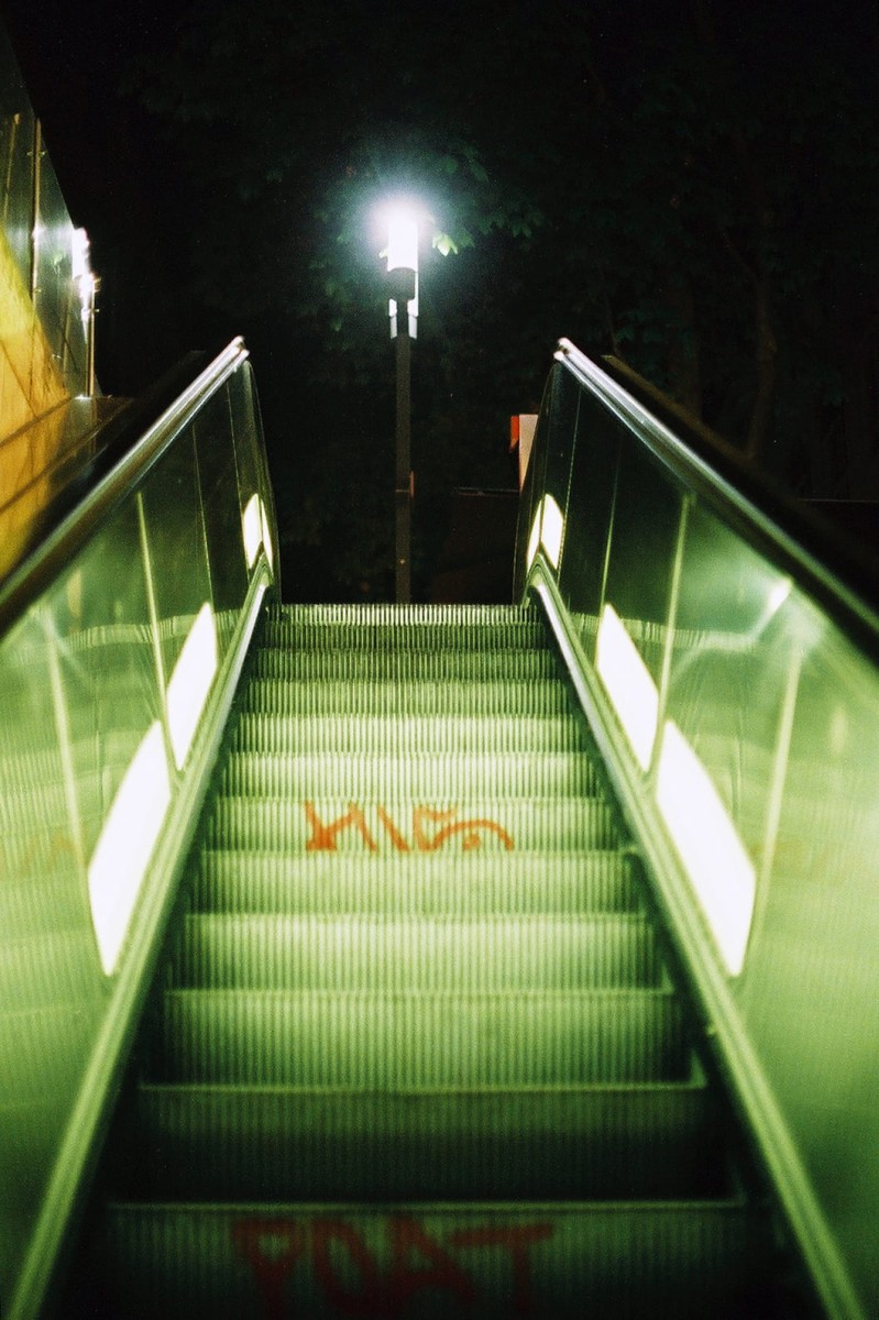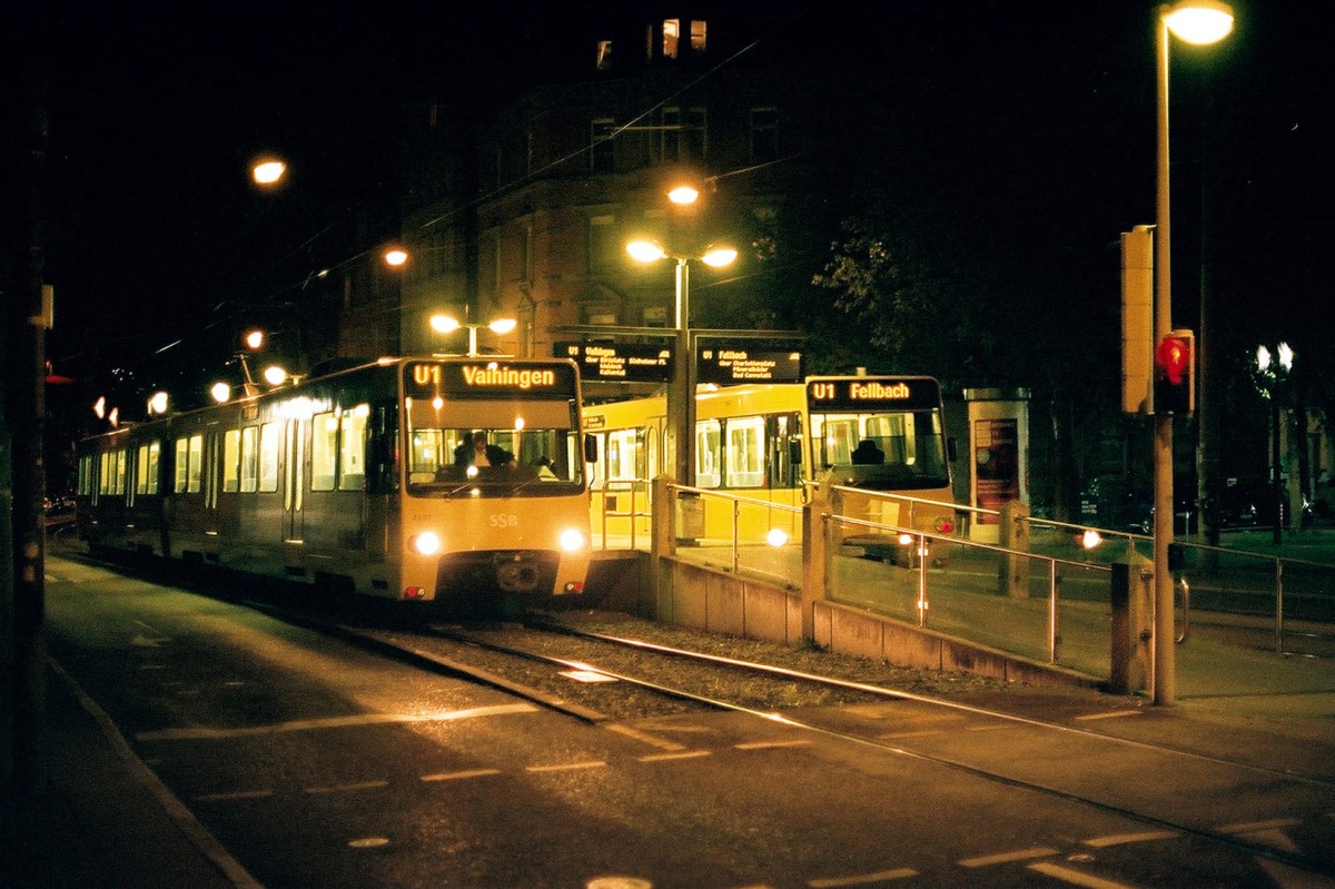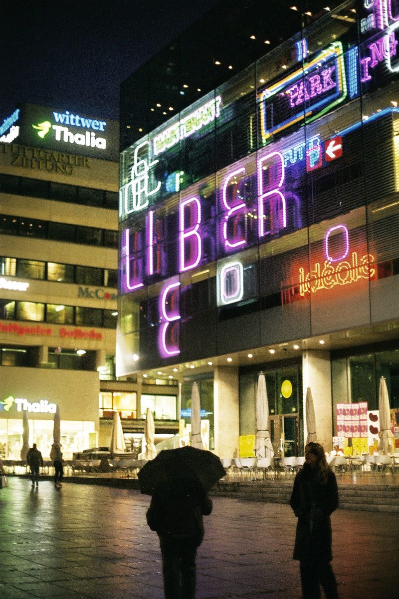 Blade Runner sucht Matthias die Schönheit der Stadt und ihrer Menschen in den funkelnden Lichtern der Nacht. Gerade Leuchtstoffröhren und Neonlicht erzeugen auf den analogen Filmstreifen eine Beleuchtung, die selbst Baustellen und Bausünden in verträumte urbane Kulissen verwandelt. Wir tauchen ab in die glitzernde Welt von Fridas Pier, die nächtliche Kulisse der Staatsgalerie, die pulsierende Gegend rum um den Kultur Kiosk, das leuchtende Kunstmuseum – und machen einen Spaziergang vom Stuttgarter Westen bis zur Uni in Stadtmitte.