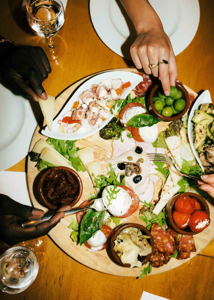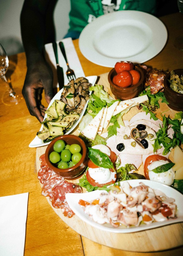 Klar, die Wodka-Sauce von TikTok oder die karamellisierte Balsamico-Pasta sind einen Versuch wert, wer sich allerdings die Evergreens der italienischen Cuisine wünscht, ist in der Trattoria Riva goldrichtig. „Avocado-Gerichte gibt es bei uns nicht, sondern die klassischen Sachen. Pizza, Pasta, Antipasti. So basic, so besser“, lacht der Betreiber Albino. Abwechslungsreich wird im Riva dennoch gekocht – jeden Mittag und jeden Abend gibt es eine neue Karte, die an die verfügbaren Zutaten angepasst wird. So sagen die Betreiber nicht nur Food Waste den Kampf an, sondern verwandeln die Trattoria täglich in eine kulinarische Wundertüte. Bei wechselnden Zutaten bleibt das Konzept allerdings gleich: Es gibt mindestens drei Vorspeisen, drei Pastas – wahlweise mit Fisch, Fleisch oder als Veggie-Option – eine Tagespizza und ein Fleischgericht. So wird auch in großen Gruppen jede:r fündig und auch das Motto Sharing is Caring funktioniert insbesondere bei Vorspeisenplatten mit Antipasti wie Oliven, Caprese, Veggies, Schinken und Zucchinis ausgezeichnet. Sonderwünsche? Laut dem Trattoria-Betreiber kein Problem: „Im Riva bereiten wir auch Gerichte zu, die so nicht auf der Karte stehen. Wenn die Zutaten da sind und der Koch gerade gut gelaunt ist, sind eigene Ideen willkommen.“ Dass Extrawünsche im Restaurant gang und gebe sind, zeigt auch der Umgang des Teams mit Sonderbestellungen: „Wir haben teilweise sogar Gerichte, die nach einem Sonderwunsch bestellt wurden, intern nach dem jeweiligen Stammgast benannt, der sich das Gericht gewünscht hat“, lacht Albino. Wenn in der Küche vom Riva zwischen Begriffen wie Tonnarelli, Paccheri, Tonnato plötzlich ein Vorname eingestreut wird, speist wohl ein besonderer Stammgast in der Trattoria.