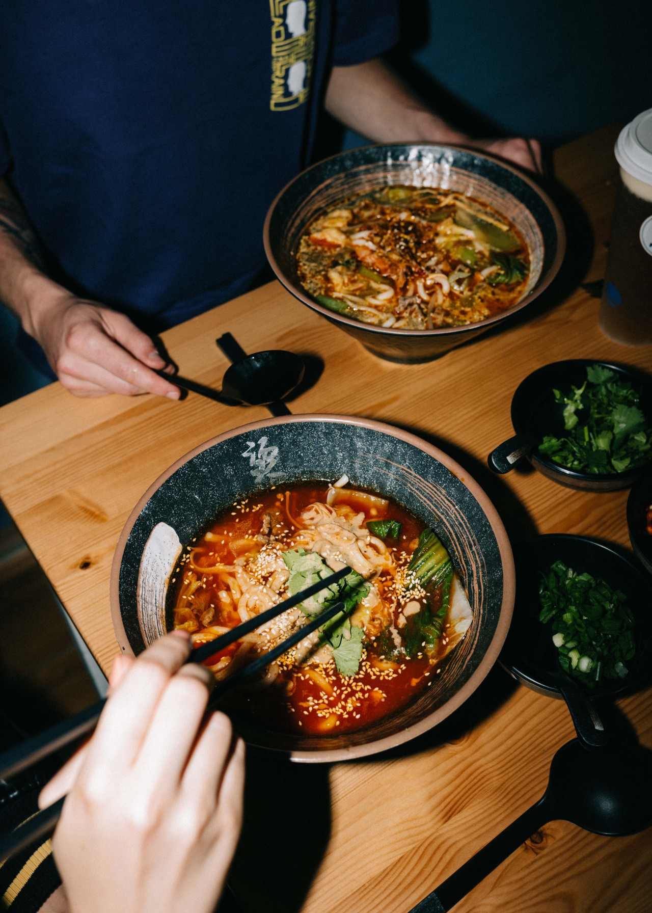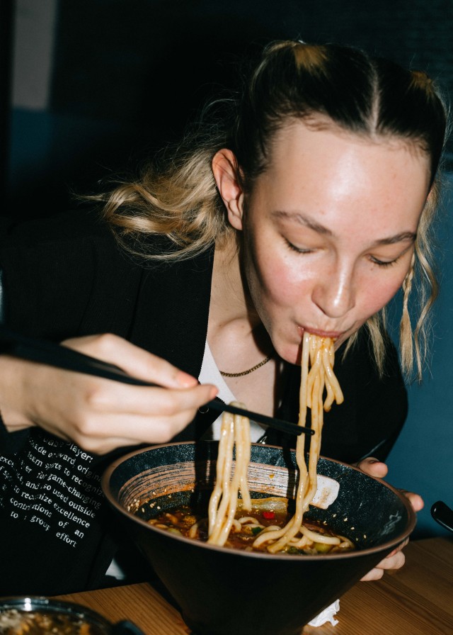 Tagsüber Data Scientist, Restaurantbesitzer nach Feierabend: Jiantongs Tag scheint 48 Stunden zu haben. Der Mala Town-Chef stammt aus dem Nordwesten von China – ein Ort mit einer Küche, den Jiantong insbesondere zur Corona-Zeit sehr vermisst hat. Die Konsequenz? Anfang August 2021 öffnete Mala Town erstmals seine Türen. Ein Full Time-Job ist das Restaurant für Jiantong noch nicht, aktuell arbeitet er als Data Scientist und hält nach Feierabend und am Wochenende das Restaurant am Laufen. Logisch also, dass Küche und Service als Selbstläufer funktionieren und der Teamzusammenhalt so stark ist, dass die Mitarbeiter:innen auch nach Geschäftsschluss gemeinsam essen. Was Jiantong beim gemeinsamen Abendessen mit seinem Team am liebsten wählt? „Die Chili-Spezialität-Brühe! Dieses Gericht habe ich auch selbst entwickelt und mit über 40 verschiedenen Gewürzen gekocht“, erzählt der Restaurantbesitzer stolz. „Die Qualität und Authentizität ist fast identisch mit der Mala Town Brühe aus meiner Heimat.“