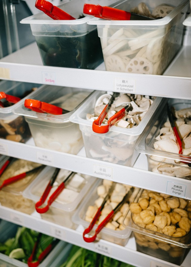 Kurz nach Aufnahme des Geschäftsbetriebs waren sich Jiantong und sein Team bezüglich der Innenraumgröße noch unsicher. Gut also, dass sie auf ehrliches Feedback der Mala Town-Fans setzen konnten: „Unsere Kund:innen meinten, die Räumlichkeiten vermitteln ihnen den chinesischen Vibe, ganz ohne Distanz aber dafür mit viel Familiarität“, freut sich Jiantong. Neben einem Mix aus traditioneller Einrichtung und Anime-Style fallen im Innenraum direkt die beiden Kühlwände ins Auge, aus denen sich Kund:innen ihre eigenen Bowls zusammenstellen können. Viele Restaurants mit vergleichbarer Kulinarik haben eine Mindestgrammanzahl festgelegt, unter der keine Gerichte verkauft werden. Jiantong geht mit Mala Town einen anderen Weg – Unter-, beziehungsweise Obergrenzen gibt es nicht, manche Kund:innen bestellen sogar 1,2 Kilogramm der Suppe und essen die eine Hälfte im Mala Town, die andere Hälfte zuhause. Die Flexibilität in der Zusammenstellung kommt an: Neben vielen asiatischen Kund:innen zieht das Konzept „Mala Town“ die unterschiedlichsten Nationalitäten an: „Wir stehen für 100% Authentizität, da ist nichts adaptiert. Deshalb spielt in der Kulinarik das Herkunftsland keine Rolle, richtig gutes Essen wird von allen Nationen erkannt“, sagt Jiantong.