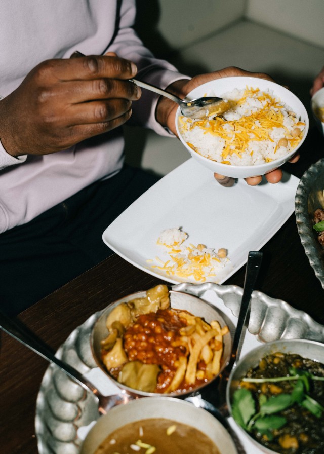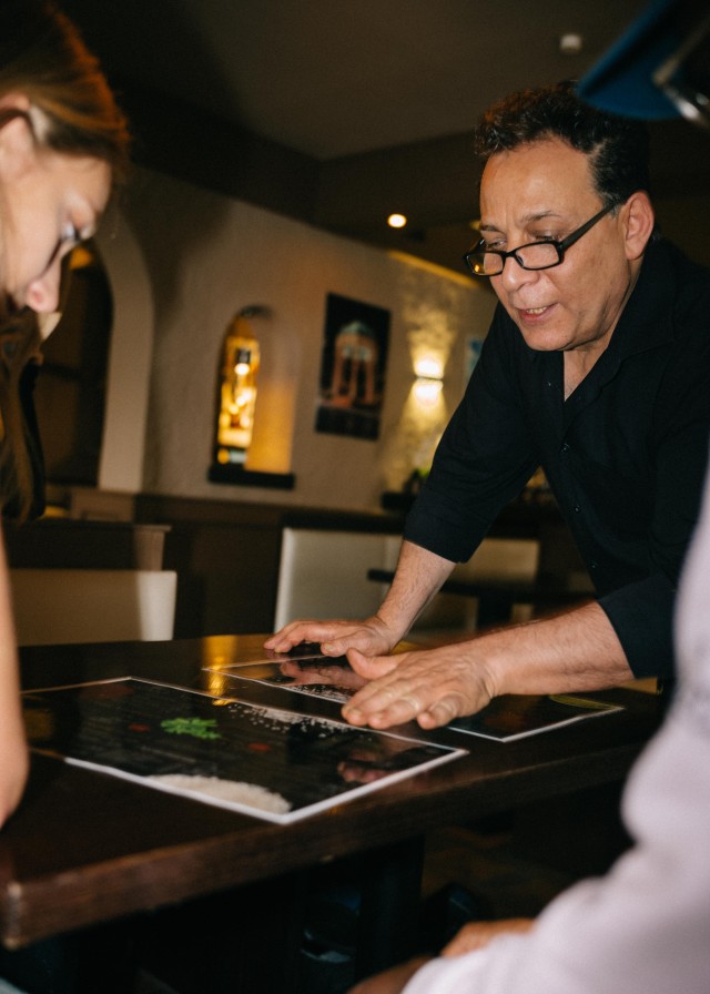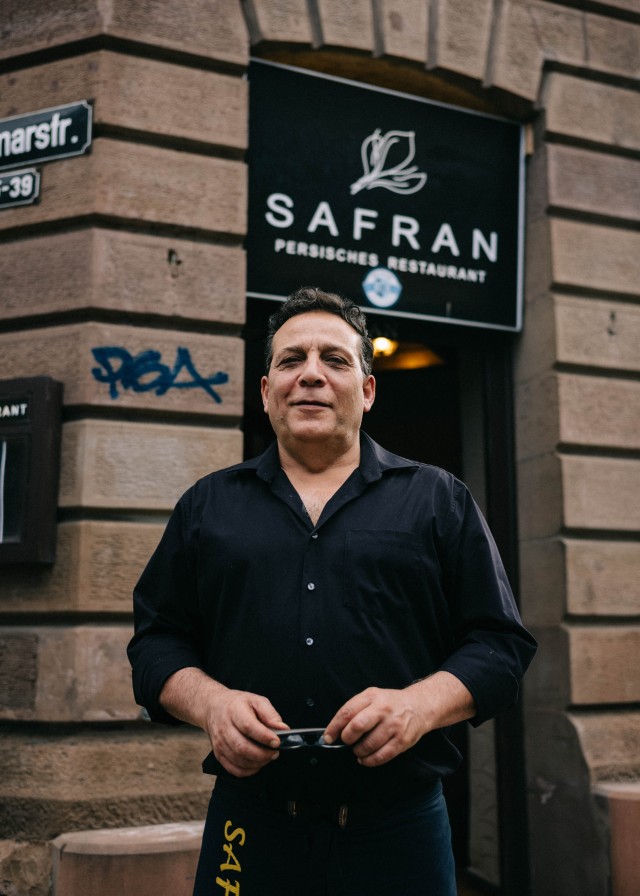 Akbar Delnavazi ist der Inbegriff von Weltküche: Gelernt hat der gebürtige Iraner in der italienischen, chinesischen und deutschen Kulinarik. Vor fast dreißig Jahren produzierte Akbar in einer Großküche Maultaschen, die er an Gastronomen verkauft hat. Daraufhin folgte ein Pizzaservice, ein chinesisches Restaurant, ein eigener Imbiss und die Großküche im Stuttgarter Amtsgericht, bis er vor 17 Jahren die Türen des Safran in der Hauptstätterstraße öffnete. Seit etwa fünf Jahren ist das Restaurant in der Schloßstraße zuhause, wo die persische Familie täglich mitanpackt: Akbars Frau, seine Schwester und sein Sohn unterstützen den Küchen-Chef im Service oder meistern gemeinsam mit einem weiteren Mitarbeiter alle Herausforderungen, die in im Safran so anstehen. Was sich Akbar trotz Multitasking-Arbeitsalltag nicht nehmen lässt? Neu-Kund:innen bei einer Reise durch die persische Kulinarik anzuleiten. „Unsere Gerichte sind so unterschiedlich, Koriander, Kräuter-, Granatapfel- und Tomatensauce, fruchtiges Gemüse, Beberizen, da ist alles dabei! Ich erklären den Kund:innen, wie unsere Gerichte kombiniert werden können und empfehle, einfach mal alles auszuprobieren“, erzählt Akbar. So unterstützt der Restaurant-Chef seine Kund:innen, den ganz persönlichen Favorit der iranischen Küche zu erkunden. Oder er hilft dabei, eine kleine To Do-Liste zu schreiben, welche Gewürze und Gerichte noch probiert werden wollen – beim nächsten Besuch im Safran dann.