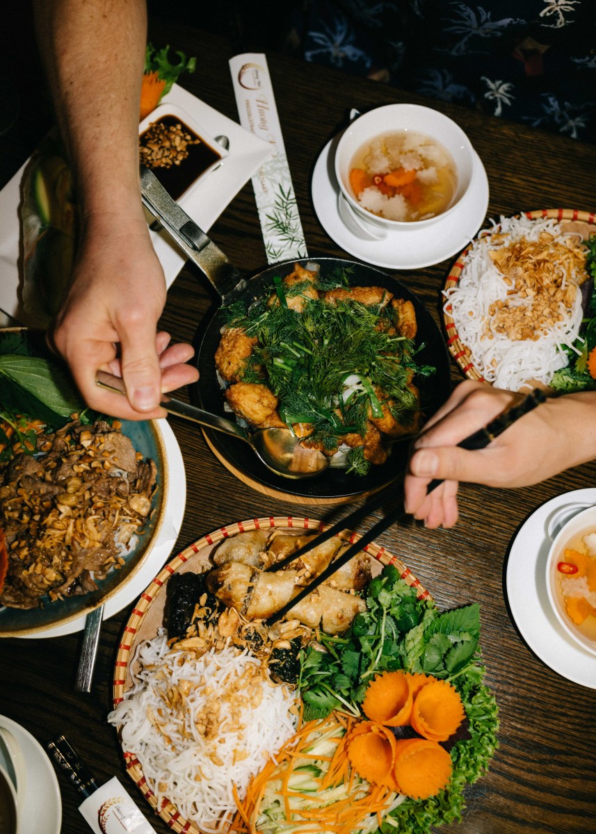 „Wir sind ein Familienbetrieb“, erklärt Frau Ngo. Die Kochkunst hat Familie Ngo im Blut, der Chef des Huong Viet, Cuong Ngo, hat bereits in Vietnam Essen zubereitet. Den Family-Spirit vermitteln die Inhaber:innen auch an die Kundschaft: Das Personal im Huong Viet ist zuvorkommend, Gäste sollen sich im Restaurant wie Zuhause fühlen. Dass man Weltküche oft an unerwarteten Orten findet, stellt die Einrichtung im Restaurant unter Beweis: Statt klassisch vietnamesischer Dekoration setzt das Team im Huong Viet eher auf den rustikal-schwäbischen Stil. Angenehm ist die Atmosphäre innen trotzdem, der Außenbereich des Restaurants läd dazu ein, die Kunstwerke auf Tellern in natürlichem Ambiente unter einem Baum zu genießen. Da das Restaurant etwas außerhalb der City liegt, können die Kund:innen das Schlangestehen direkt überspringen – die Zubereitung im Huong Viet passiert blitzschnell. Dementsprechend optimal ist dieser Repräsentant der Weltküche, wenn die ganze Familie, Firma oder Freundesgruppe statt werden soll. Das Motto „Sharing is Caring“ wird auch auf der Speisekarte repräsentiert: So kann beispielsweise der vietnamesische Feuertopf von bis zu vier Personen verspeist werden, die hausgemachte Brühe besteht aus einem Hühnersüd und wird mit verschiedenen, asiatischen Kräutern garniert.
