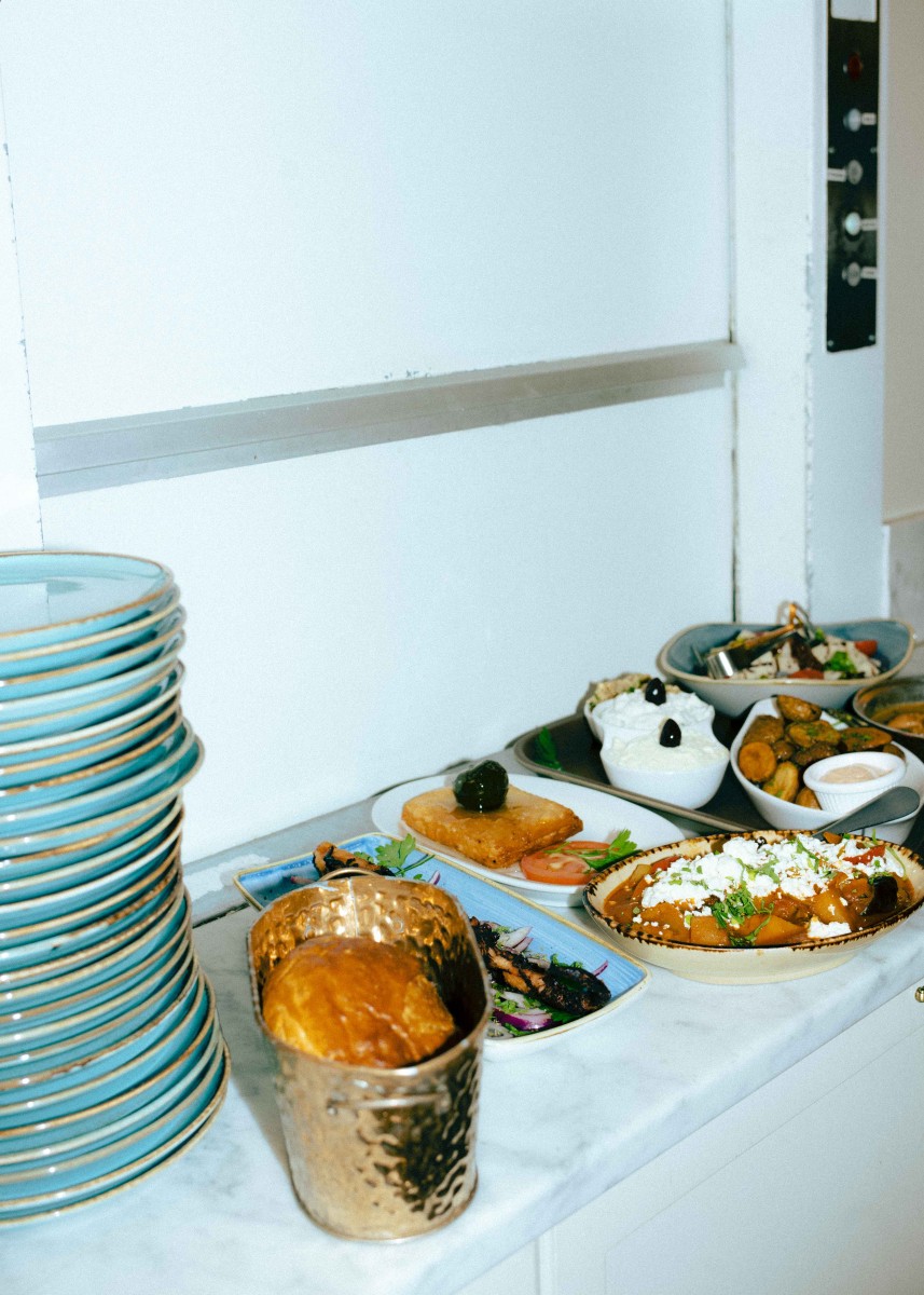 Wenn sich viele Gäste an einem Tisch vom ersten, griechischen Tapas bis zum letzten Ouzo Zuhause fühlen sollen, müssen nicht nur die Mezes stimmen, sondern auch die Location. Christos Taverne in der Katharinenstraße strahlt die gastfreundliche Persönlichkeit des Restaurants aus, die Einrichtung und der Boden in dunklem Holz transportieren einen urigen Flair, wobei ein glitzernder Kronleuchter vor einer Spiegelwand mit grafischen Ornamenten an der Bar die Besucher:innen direkt ins Stadtzentrum von Athen beamt. Unterstrichen wird der familiäre Vibe von den an der Decke hängenden Lampen aus Seetauen. Wer sich einen Platz mit Blick auf die hölzerne Regalwand sichert, kann nach dem Aufwachen aus dem Food-Koma mit dem Zählen der vielen Weinflaschen beginnen. Zu denen hat Christos eine ganz besondere Anekdote parat. „Vor 2010 gab es nicht mal 100 Winzer in Griechenland, nach der Krise sind es über 3000“, freut sich der Inhaber, dessen Familie aus Xanti und Thessaloniki stammt. „Es gibt sehr viele gute und viel prämierte Weine, die allerdings nie richtig promoted wurden. Zu einer Gruppe von zuvor sehr kritischen Wein-Liebhabern in unserer Taverne habe ich gesagt: Ich bringe euch einen Wein, und wenn ihr ihn nicht mögt, nehme ich ihn zurück. Am Ende haben sie fünf Flaschen davon getrunken.“