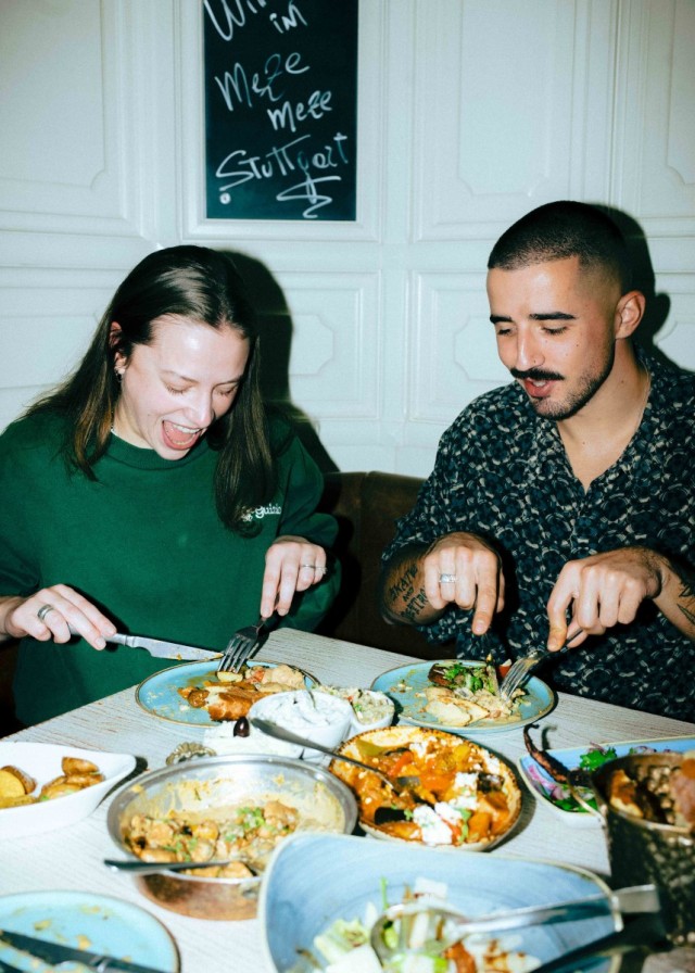 Für Greek-Food-Neulinge heißen die Traditionsgerichte auf der Balkanhalbinsel Gyros und Souvlaki. Eine ziemlich fleischlastige Kulinarik also? „Das ist eine falsche Überbringung der griechischen Küche“, erklärt der Meze-Meze-Inhaber Christos Minoudis. „Die ersten Griechen, die in den 60er Jahren ausgewandert sind, haben versucht, die griechische und die deutsche Küche zu vereinen. Dabei ist eine sehr fleischlastige Kultur entstanden, aber eigentlich gibt es tausend andere Sachen. Gyros gehört nicht in eine griechische Taverne.“ Keine Überraschung also, dass die Highlights auf Christos Speisekarte vegetarisch sind. Ein Tisch voller Meze-Veggies könnte wie folgt aussehen: Auberginentäschchen treffen auf Tzatziki mit nativem Olivenöl, werden von Manouri mit Sesam, gefüllten Weinblättern und Pastrami-Blätterteig begleitet und die Austernpilze freuen sich, den Grill mit Halloumi und Tomaten zu teilen. Überfordert vom Gemüseangebot? Selbstverständlich hat Christos auch einige Fleischgerichte, für die sich der Ausflug nach Cannstatt oder zur Stadtmitte lohnt: „Bei den Meeresfrüchten achte ich darauf, sie direkt aus Griechenland zu beziehen, das lockt viele Gäste zu uns. Außerdem arbeiten wir eng mit Züchtern zusammen, die Rinder und Schweine im Freien halten, das merkt man dann auch im Geschmack.“ Wer sich selbst davon überzeugen möchte, findet auf der Meze-Karte auch Calamaris, Oktopus, geräuchertes Makrelenfilet, gebratene Kalbsleber – und ja, auch Souvlaki in den verschiedensten Formen.