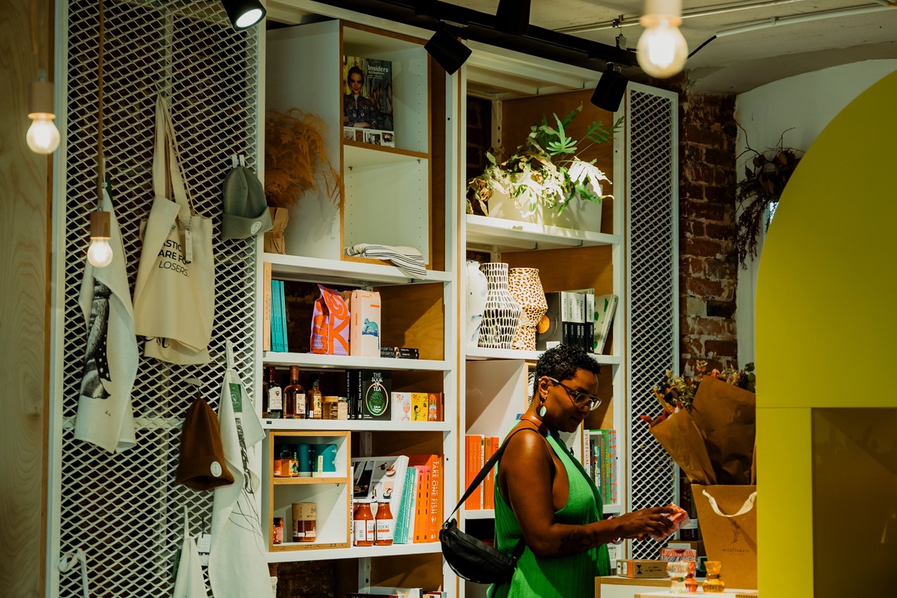 Wir steigen am Charlottenplatz in die U2 und an der Station Schwab-/ Bebelstraße aus. Ganz in der Nähe befindet sich das Café Wyld. „Ich liebe das Wyld!”, ruft Jennifer begeistert. Das Konzept am Rosenbergplatz vereint eine Tagesbar mit einem Store und hält allerlei bunte Überraschungen bereit. Jennifer verbindet eine persönliche Geschichte mit diesem Ort: „Da ich kein eigenes Büro hatte, durfte ich in den ersten Monaten der Konzeption des BitchFests kostenlos in einem Kunstatelier im Westen arbeiten, das von der Besitzerin nur wochenends genutzt wurde. Sie hat Porträts von starken Frauenpersönlichkeiten gemalt, in deren Umgebung es sich natürlich umso besser arbeiten ließ! Da sich das Wyld in Gehweite befindet, habe ich mir in dieser Zeit oft meinen Kaffee dort geholt oder mich für Meetings getroffen“, erklärt sie. Auch der zugehörige Concept-Store hat es Jennifer angetan – schließlich hat sie eine große Leidenschaft für Design: „Der Concept-Store hat viele kleine tolle Produkte, die ich alle noch aus meinem ‚ersten Leben‘, aus Zeiten der Blickfang kenne.“ Sie stöbert zwischen Kerzen, Coffee Table Books und Postkarten. Man könnte also fast sagen, an diesem Ort vereinen sich Jennifers zwei Leben … Nach einer hausgemachten Limonade geht’s für uns weiter zum letzten Spot.