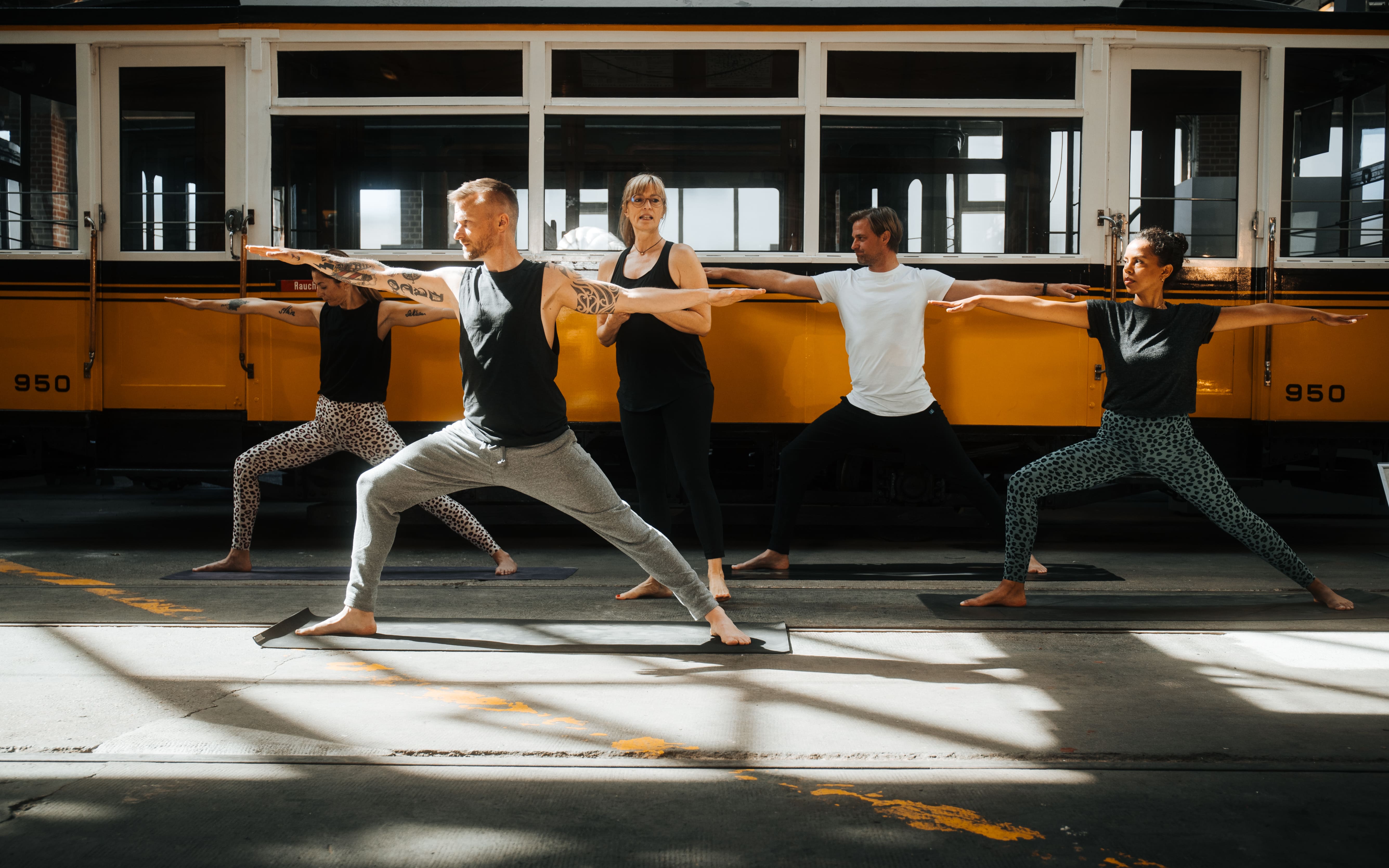 Yoga im Straßenbahnmuseum